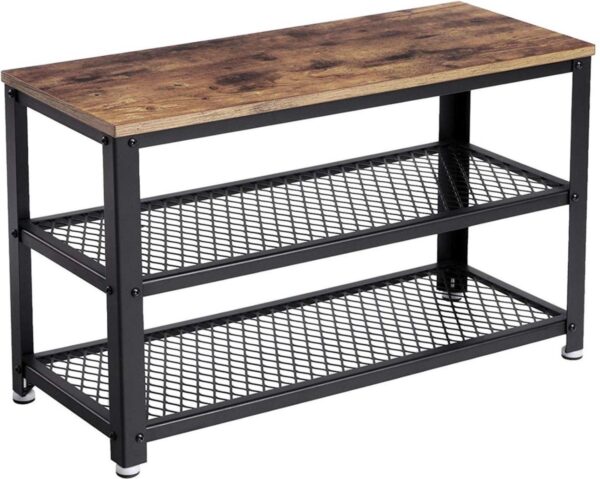 Bobbel Home Schoenenrek Industrieel – schoenenbank met zitvlak – metalen schoenenkast – 2-laags schoenenrek hout-zwart – hal bankje – 6-8 paar schoenen – 73 x 30 x 45 cm (8719325781205)