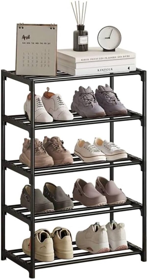 Goodivery ® Compact en Slank Schoenenrek voor Diverse Ruimtes, Anti-Roest, Stapelbaar en Veelzijdig Gebruik – Zwart – 3 niveaus (8721273189385)