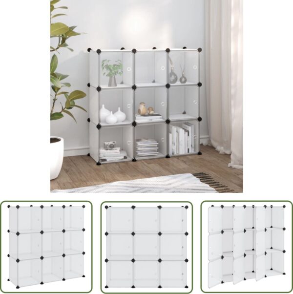 vidaXL Opbergmeubels – Kunststof Opbergbox – Opbergmeubel met 9 vakken en deuren polypropeen transparant – Opbergsysteem – Multifunctionele Kast – Plastic Opbergkasten (8721031229513)