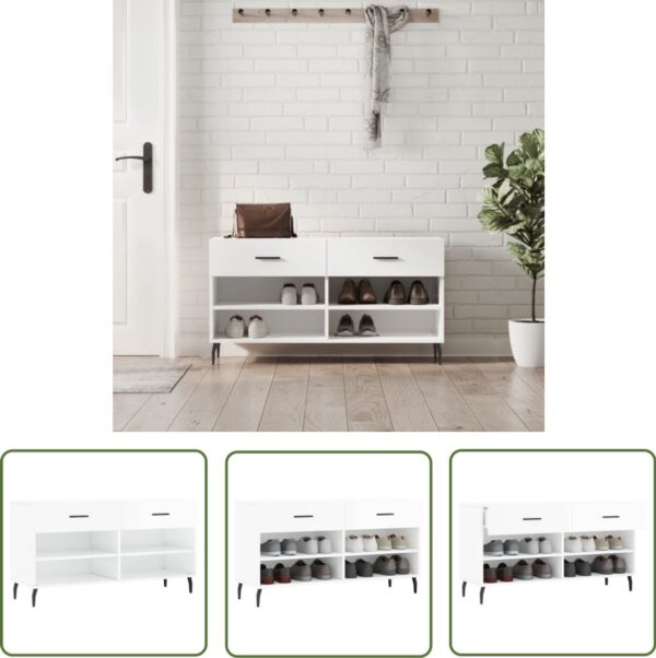 vidaXL Schoenenbank – Wit – 102x35x55 cm Schoenenbank – Houten Schoenenbank – Schoenen Kast – Opbergruimte – Organisatie (8135001882521)